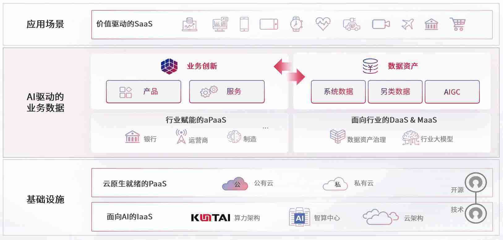 数字时代,,围绕企业数字化转型的关键要素,,赏金国际数码开创性的提出数云融合战略和技术体系框架,,,着力在云原生、、、、数字原生、、、AI原生和信创产业上架构产品和服务能力,,,,为处在不同数字化转型阶段的快消零售、、、、汽车、、金融、、、医疗、、、、政企、、、教育、、、运营商等行业客户提供泛在的敏捷IT能力和融合的数据驱动能力,,,构建跨界融合创新的数字业务场景和新业务模式,,,助力企业级客户建立面向未来的核心能力和竞争优势,,,,全面推动社会的数字化、、智能化转型升级。。