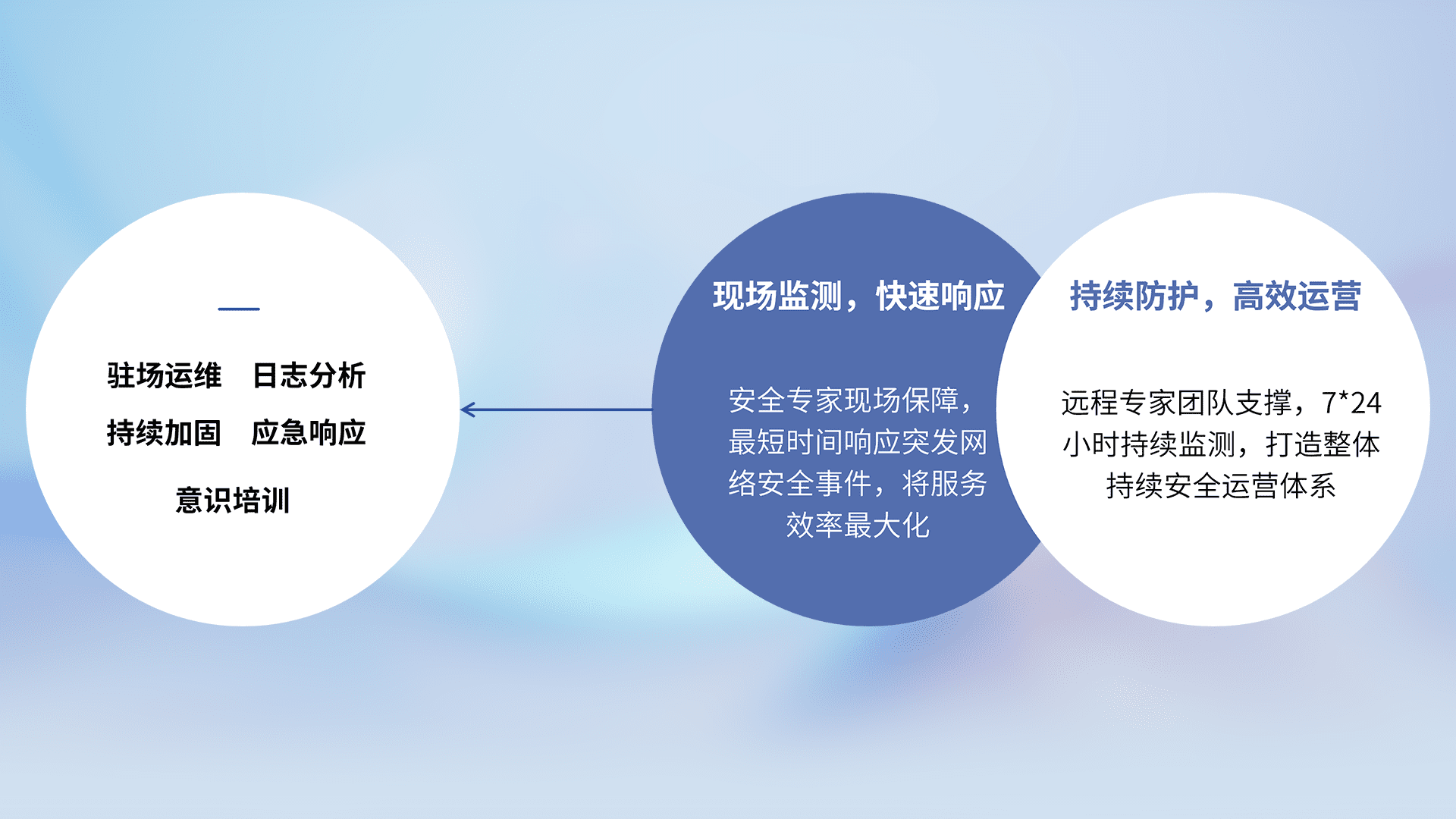 7X24小时持续监测安全事件,保持安全策略有效性,降低资产脆弱性风险,,,,精准拦截黑客攻击,,,减少被黑客利用的机会,,,第一时间遏制,,,,降低损失。。